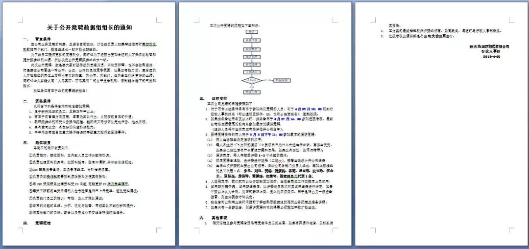 在竞聘开始前,行政部发出长达3页的公告,面向公司内部开展竞聘。