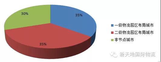 调查显示,国家布局节点城市的物流园区数量占全国物流园区总数的65%,如下图所示: