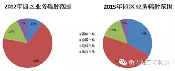 2012年和2015年物流园区业务辐射范围对比