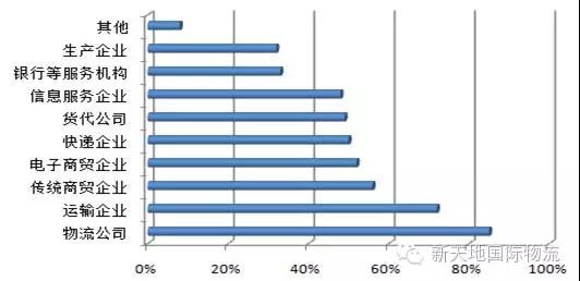 另外,问卷调查结果显示,虽然物流公司和运输企业仍然是物流园区入驻最多的企业。但值得注意的是,随着电子商务的快速发展,超过50%的物流园区有电子商务企业和快递企业入驻。如下图所示: