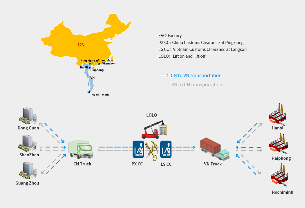 我们为客户提供中越门到门陆路跨境专线运输服务。